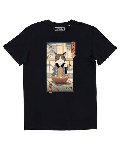 Neko Ramen Ukiyo-e T-shirt - Japanese graphic T-shirt: Black / M