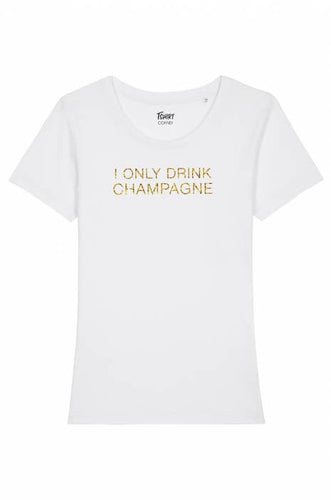 Women's T-shirt - I Only Drink Champagne - Glitter: S / White