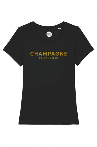 Women's T-Shirt - Champagne Please - Glitter: L / Black